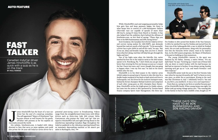 My profile of Canadian Indycar driver James Hinchcliffe.